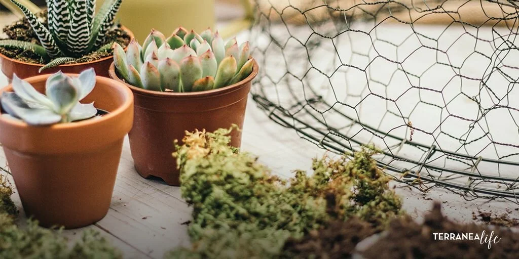 Add more soil to pack the succulents in tight. And then top with moss to cover any gaps between the succulents.
