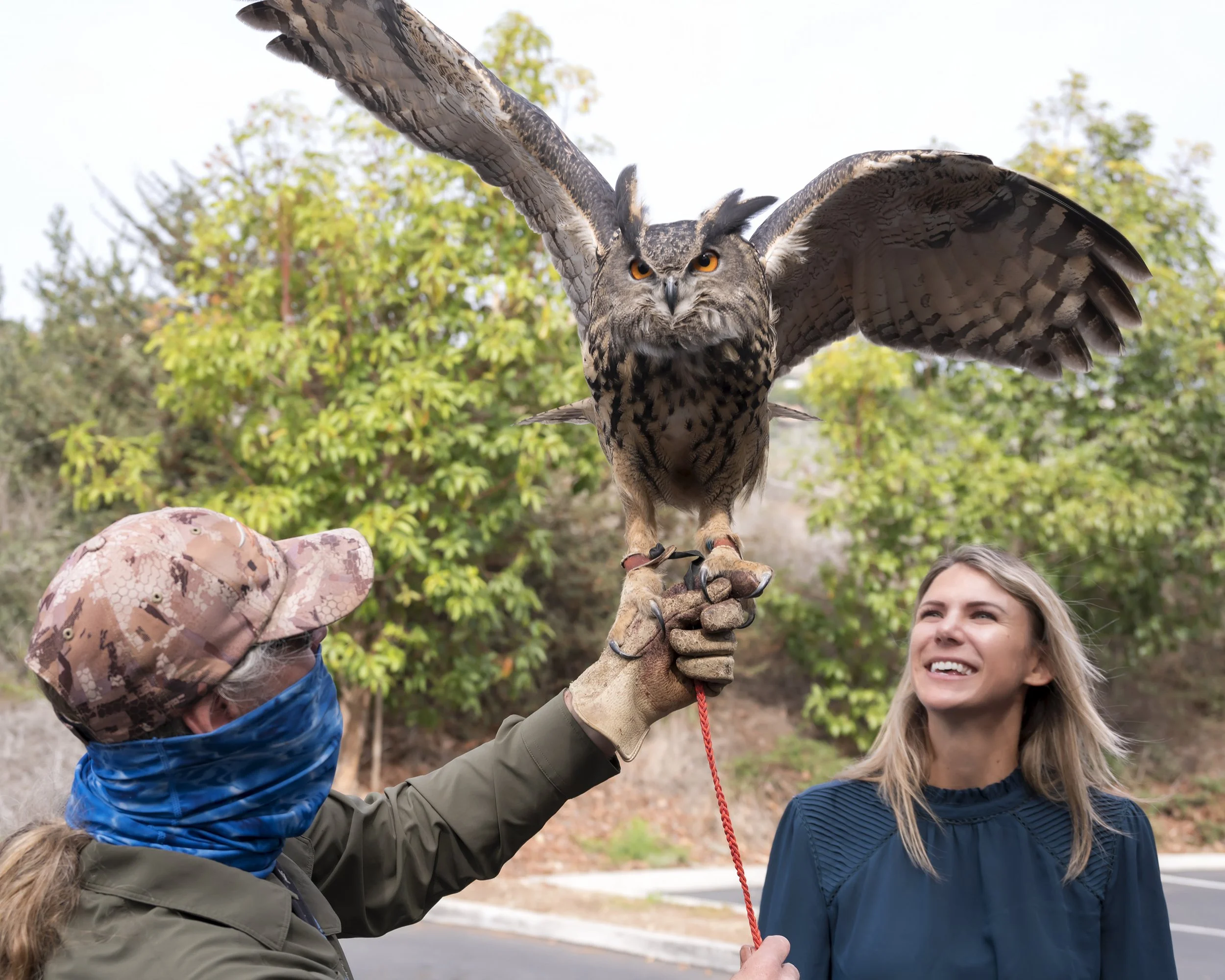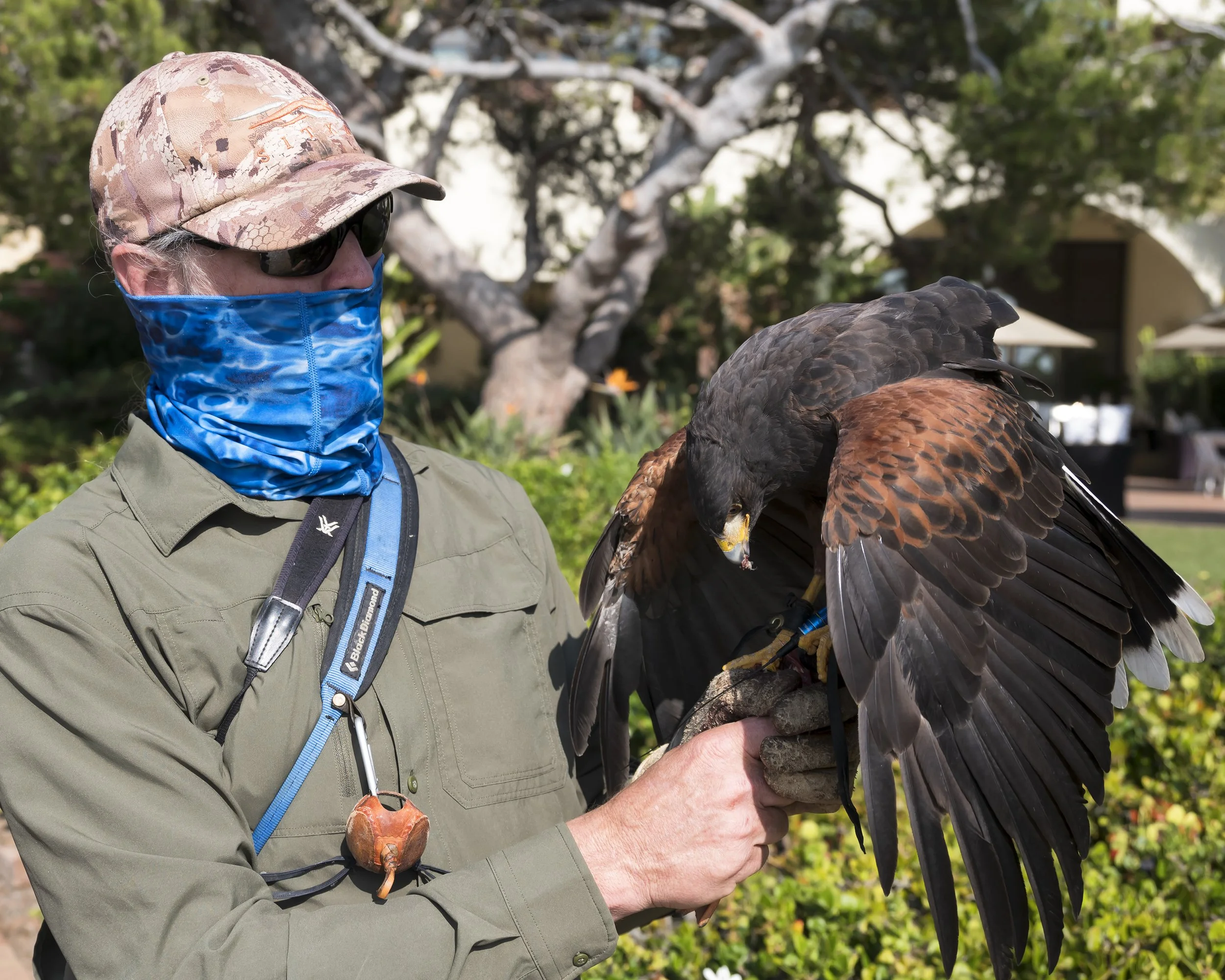 Roy grew up in the City of Thousand Oaks and from the time he was a small boy, he had a passion for handling raptors. Roy indicates, “This passion was fueled by a neighbor whose son was not interested in raptors but found Roy a very eager and willing student.” The neighbor took Roy under his wing, so to speak, and began teaching Roy the art of falconry. As Roy grew older, he began caring for and handling as well as hunting with his own birds. By the time Roy arrived at Terranea, he had over thirty years of knowledge and experience with raptors. Within time, Roy became the Resort’s only Falconer.