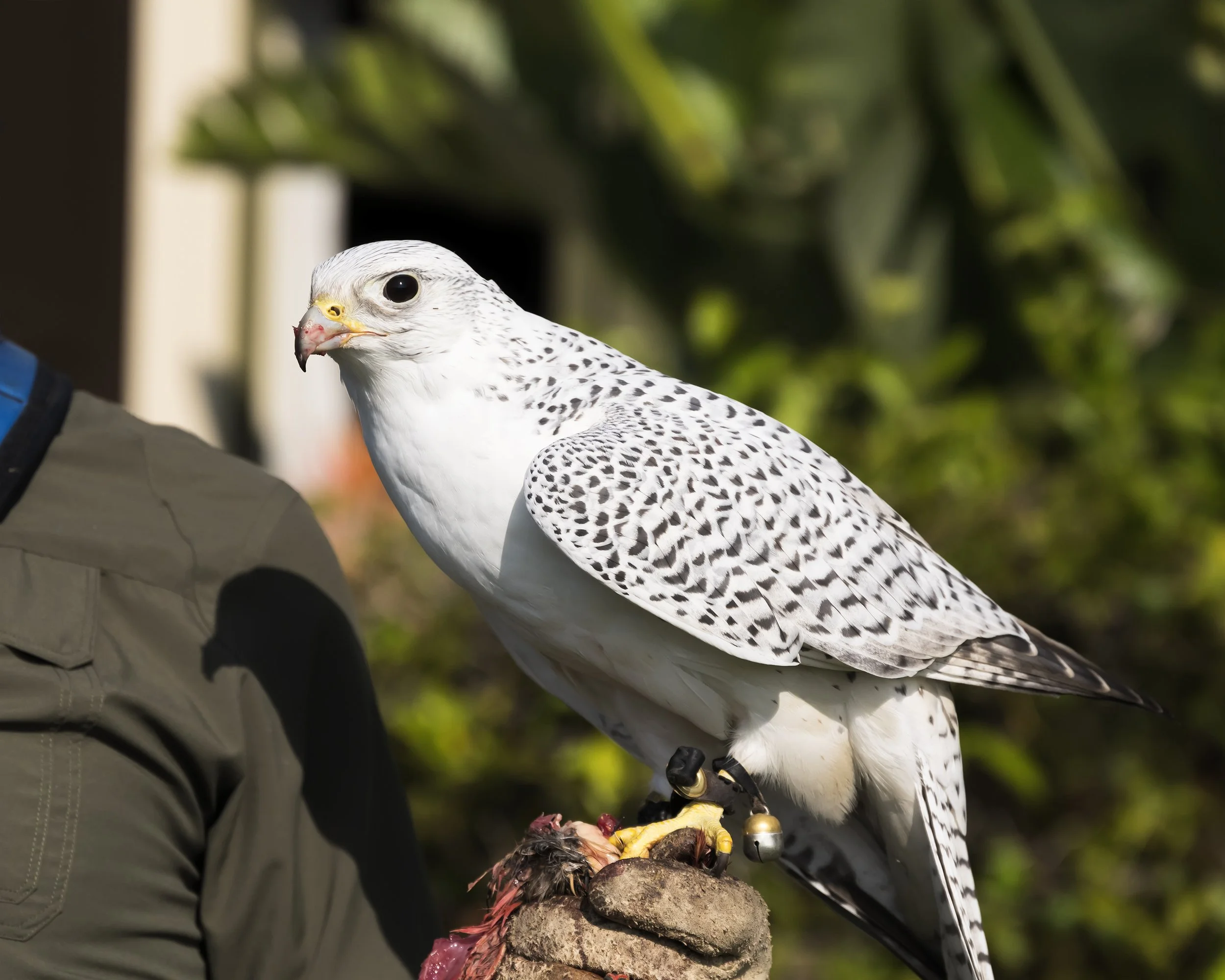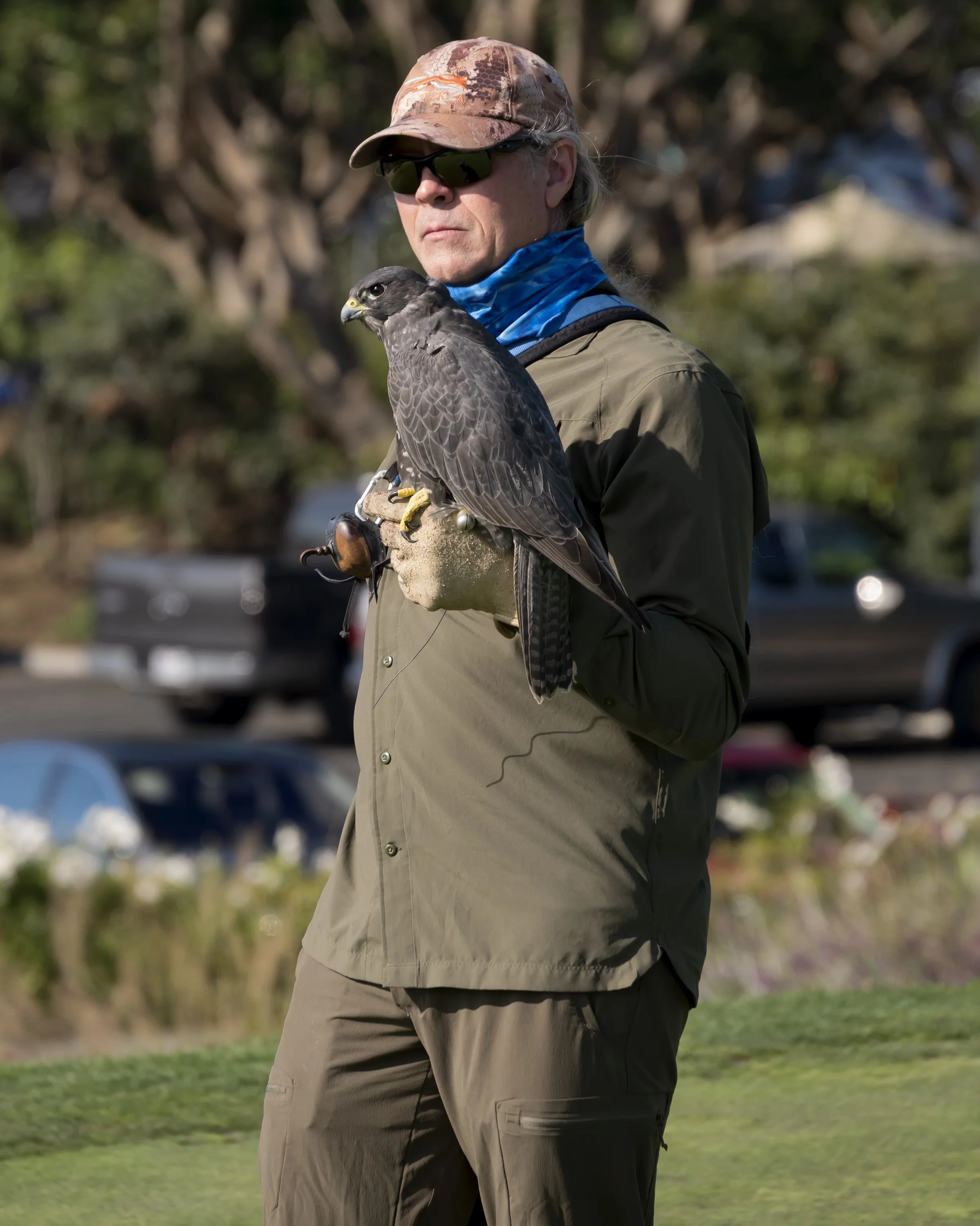 At the Resort, Roy flies four falcons: Apex, a one-year-old gyrfalcon and peregrine hybrid; Thor a gyrfalcon and peregrine hybrid; Sammy, a seven-year-old a gyrfalcon and saker hybrid; Sharman, a five-year-old gyrfalcon and peregrine hybrid; and a Harris Hawk, Tomahawk, a tiercel (male). Roy and his birds are on property five days a week. According to Roy, “The falcons’ tremendous flying abilities makes them ideal to guard large portions of the Resort’s property. Just their presence discourages the unwanted birds from entering the Resort’s air space.”