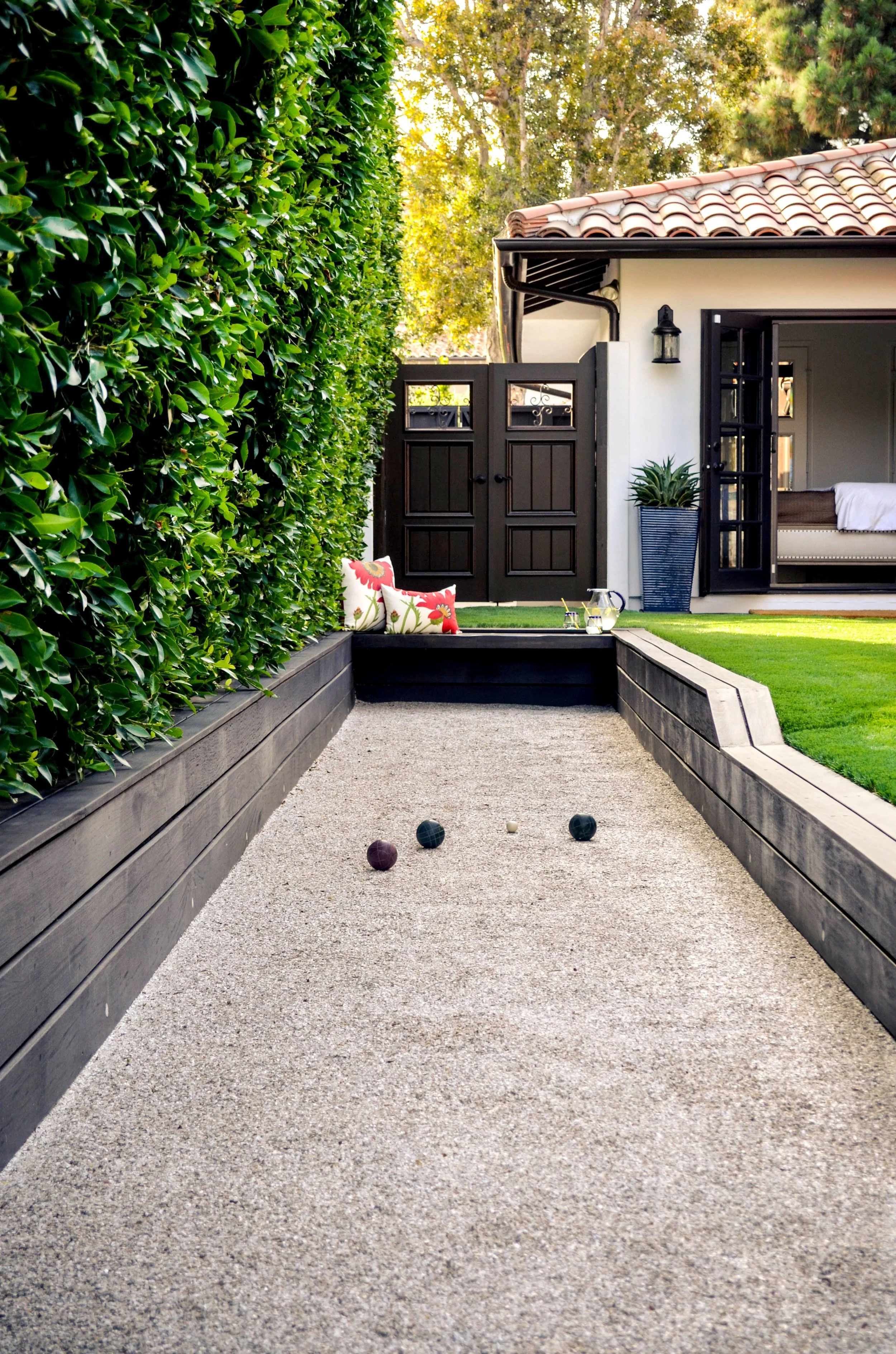 A backyard bocce court brings fun, resort-like appeal and can be created in a relatively small space. Surround it with lush greenery and a bench for seating and this addition will activate the backyard with visually interesting lines and endless possibility.