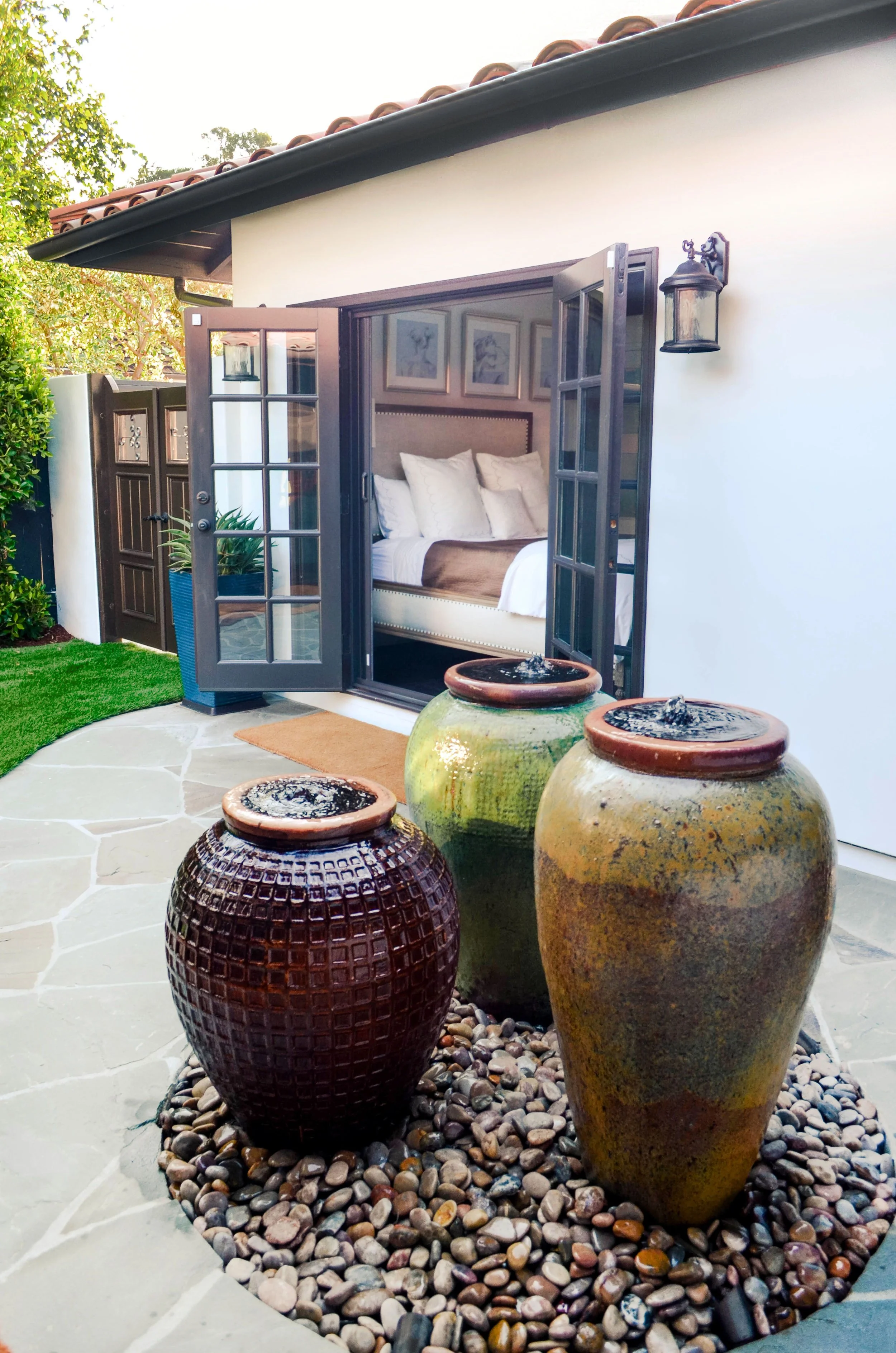 When choosing the perfect fountain for a garden, the first thing to look at are the prominent shapes in the outdoor space. If there are a lot of straight lines in the surrounding areas, I tend to choose rounded fountains or a collection of rounded fountains to soften hard lines and add a bit of contrast. Likewise, in areas with mainly circular features, I’ll tend to use square or rectangular fountains. I also like to tie in colors found in nature in the fountains I use. This creates a cohesive color scheme and helps the fountains become part of the overall garden scape and not feel out of place.