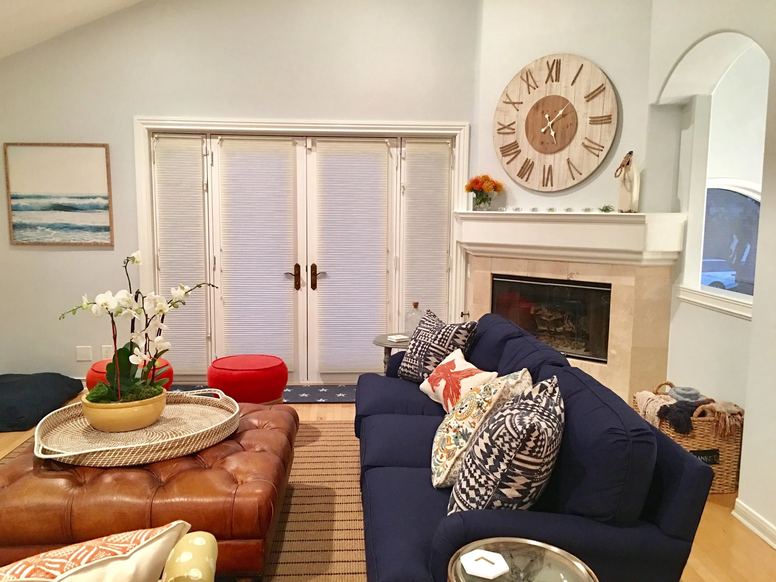 Texturize - Now that we have the large elements in place, the fun begins with all the accessories that put the living into living room. Layering different types of fabrics into your design elevates your space and brings life into your design. Leather or fabrics like velvet and mohair are luxurious choices when thinking about upholstery. Fluffy down insert pillows and wool throw blankets add pops of texture and really make the space inviting.