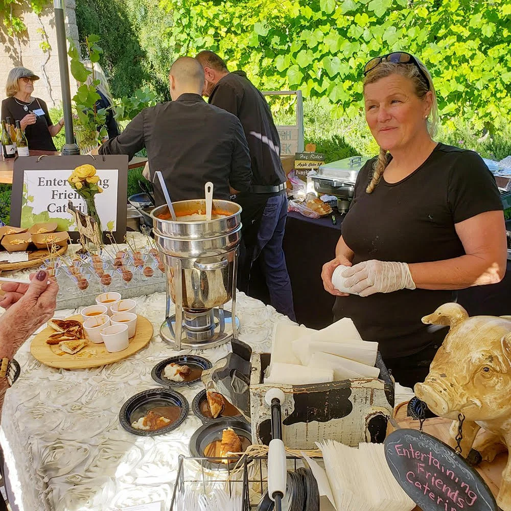 Chef Jean Cordero, proprietor of Entertaining Friends Catering, at her booth at Celebrate Chefs & Cellars 2019. Photo: Palos Verdes Art Center.