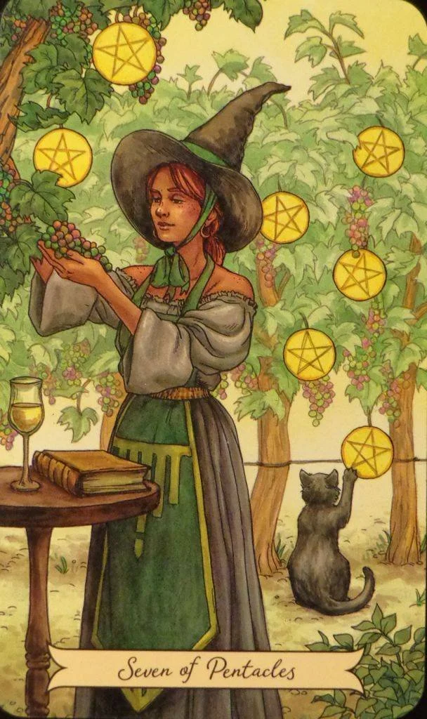 In Seven of Pentacles (Saturn in Taurus), we experience hindsight. We’ve attempted something and now must reflect on what didn’t work. The most agricultural Saturn card of the deck, fecund Taurus is in growth mode. However, sometimes things go wrong and we have to bear the disappointment and take stock of what got us to this place of failure or challenge. Was our planning sound? Did we forget anything? Were we ready? Did we fuel our efforts with love and optimism? Perhaps we did everything right and just got the booby prize this time. We can start again and ground our dreams and hard work in the promise of a new cycle.
