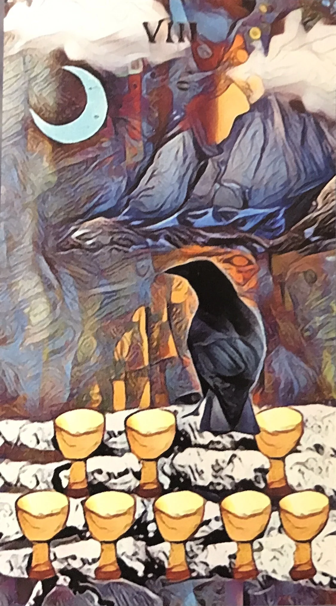 Heavy water stagnates in Eight of Cups (Saturn in Pisces). How do you know when it’s time to walk away from an emotionally-fraught situation? Do you stay focused and try to make it work, or is it best to just let it go and move on? Or are you giving up because it seems too difficult? There can be a lot of self-doubt here, especially when there are powerful feelings involved. This card often appears for endings or transitional stages in relationships. You must ask yourself what is emotionally healthier overall. Releasing a connection does not mean it was a failure. Sadly, not all emotional ties remain the same long-term as people continue to grow and change. Can you allow yourself to see and accept this?