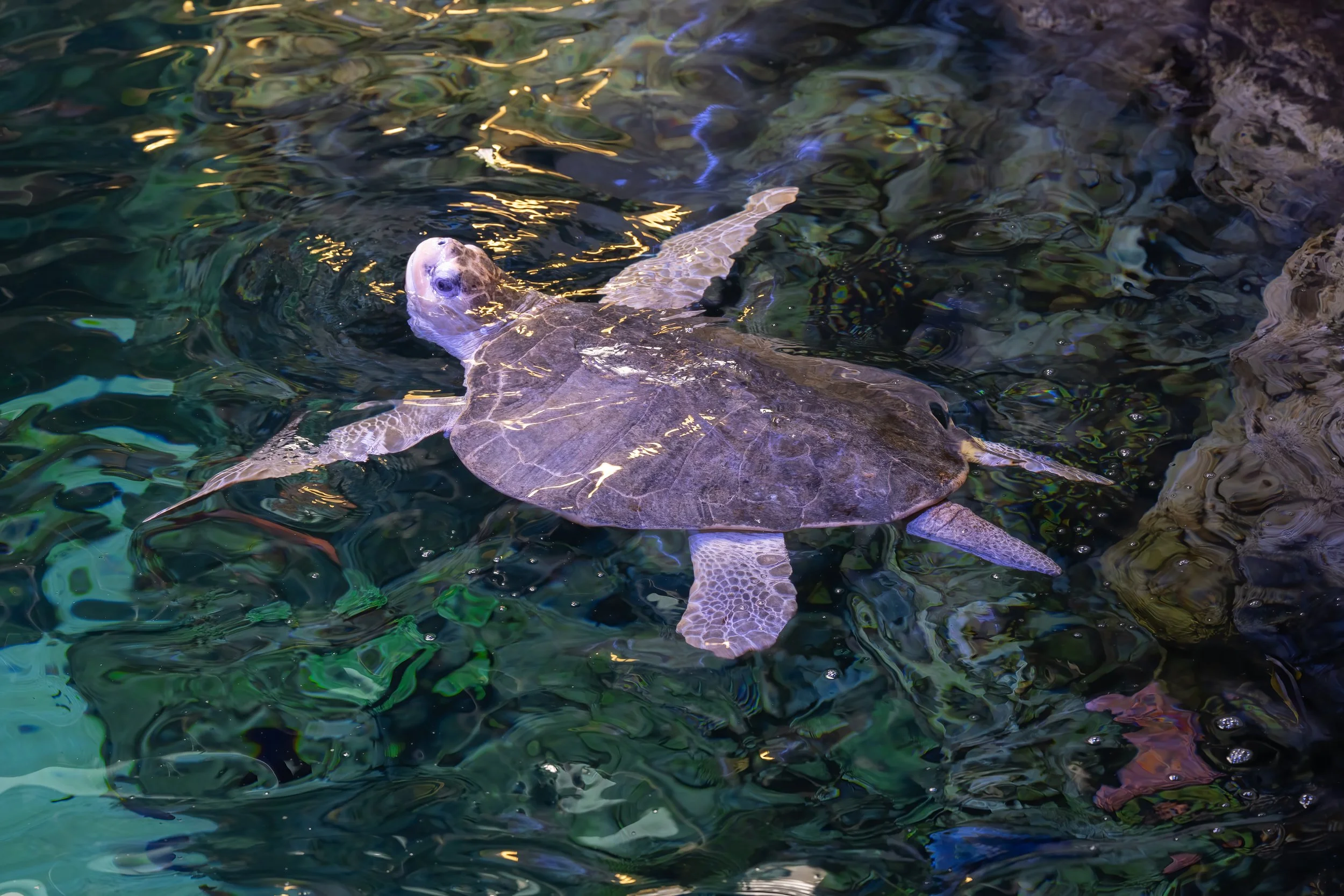 While we walked around the permitter of the main tank on the surface of the water was a sea turtle swimming along watching us. The animals are used to being fed when humans are present so they start to gather on the top of the tank. In this work area there was a round sling and small hoisting crane to put the sling into the water. When the sling is lowered the rays that have a round shape know that they must swim into the sling to be fed. Likewise with the regular shaped fish (their sling is rectangle) they swim into the sling to be fed. They call this the feeding station and feed the animals in this way so that they can insure that all of the animals are fed. Think of this as a drive thru fast food place and you always get your favorite foods. This article was only intended as look behind the scenes but the aquarium offers much more than what was said here.