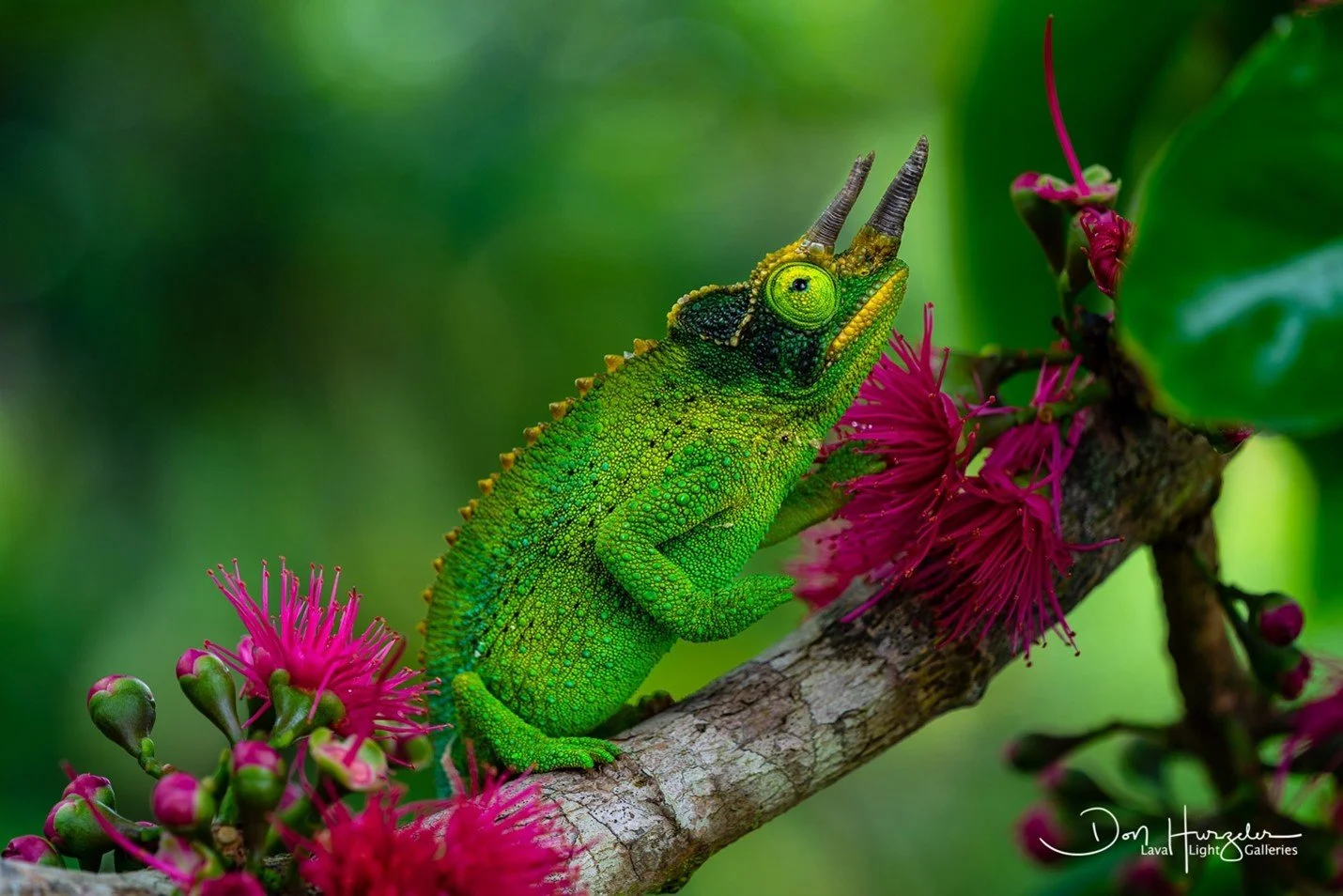 The female lacks the horns, but is an amazing hunter…nailing insects in the blink of an eye with a tongue seemingly as long as her body.