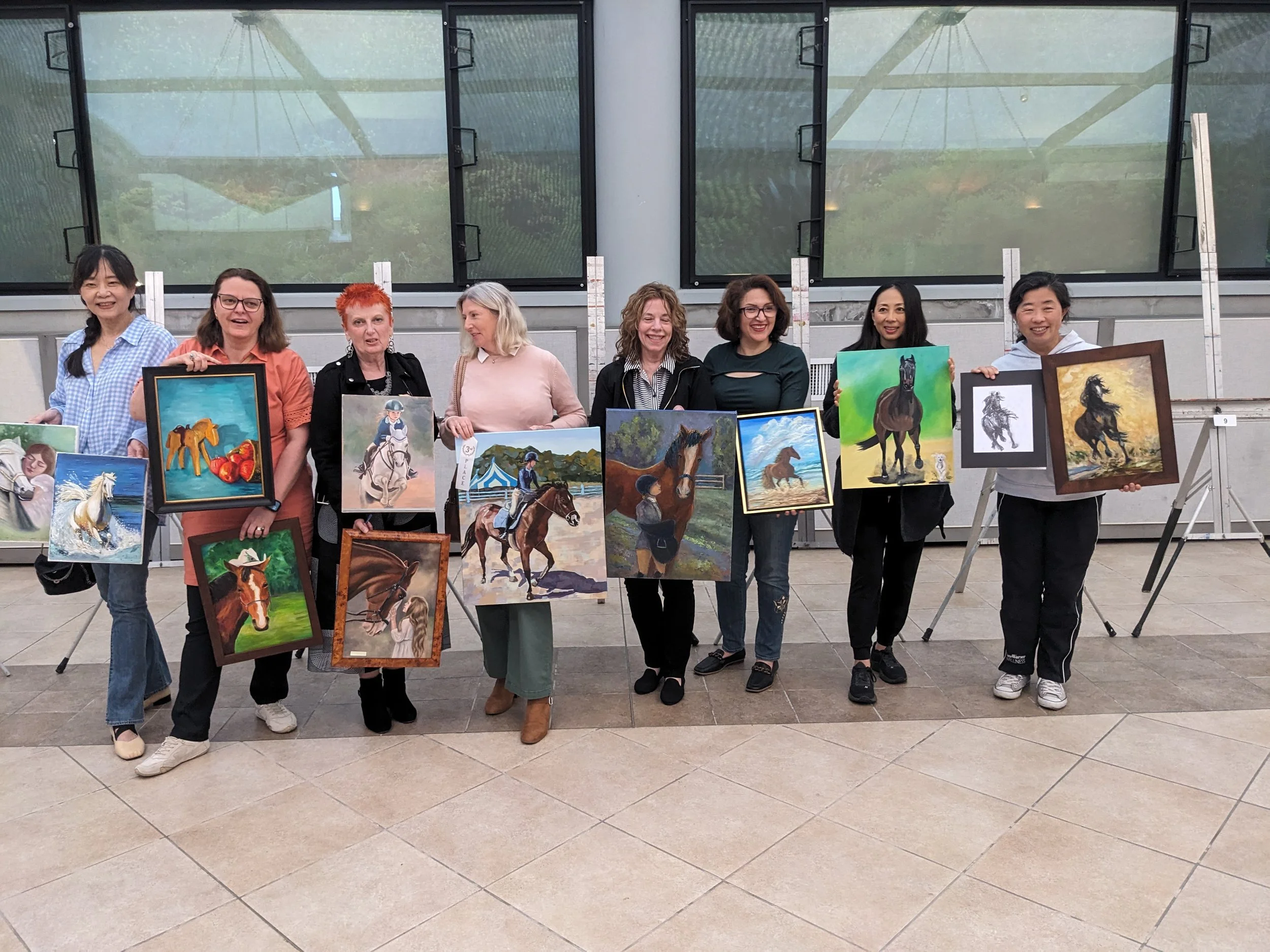 Giese does just that, looking for ways to use her artistic skills to better the community, whether that means volunteering in local schools or participating in art contests like the Portuguese Bend National Horse Show Poster Contest where PVAC member artists submit work. Debbie has presented her art to this annual contest year after year, which supports Children’s Hospital of Los Angeles. This year, eight of her students submitted for their theme, “Saddle Up for Smiles”. Two of those students were in the top 3, Susan Whiting, received 2nd place while Sally Herriott received 3rd place. Debbie exclaimed for good reason, “I am so proud of all who participated!”.