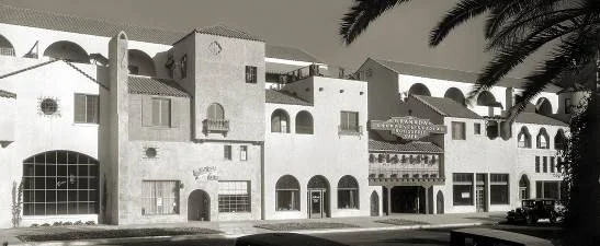 On October 20, 1928, the Los Angeles Times reported the grand opening: “Designed by architect Franklin Harper to evoke a street in Spain, the Granada Studios and Shoppes incorporates ateliers with upstairs apartments, similar to the design of specialty shops in Europe, with twenty-four uniquely designed doorways, a reflecting pool, and a central patio enclosed by stained glass windows.”