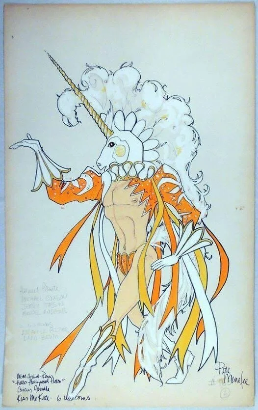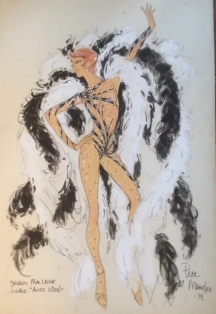 He had a Palos Verdes connection as he was choreographer for a show at Marineland. It involved 40 girls and one dolphin. As much of it took place in water, Pete remembers that the girls kept coming down with ear infections. Through Edith Head, Pete was finally given a chance to work as a costume designer and sketch artist. Edith had asked to do some sketches for a TV show starring Shirely MacLaine. Edith eventually drop out from doing the show and Pete was asked to step in her place. He would go on to design many more shows for Ms. MacLaine as well such shows as “Charlie’s Angels”, “The XIX Winter Olympics Opening Ceremonies”, “Mork and Mindy”, “The Barry Manilow Special”, “The Perry Como Christmas Special”, “Jack Benny’s First Farewell Special”, and “Debbie Reynold and the Sound of Children “ to name a few.