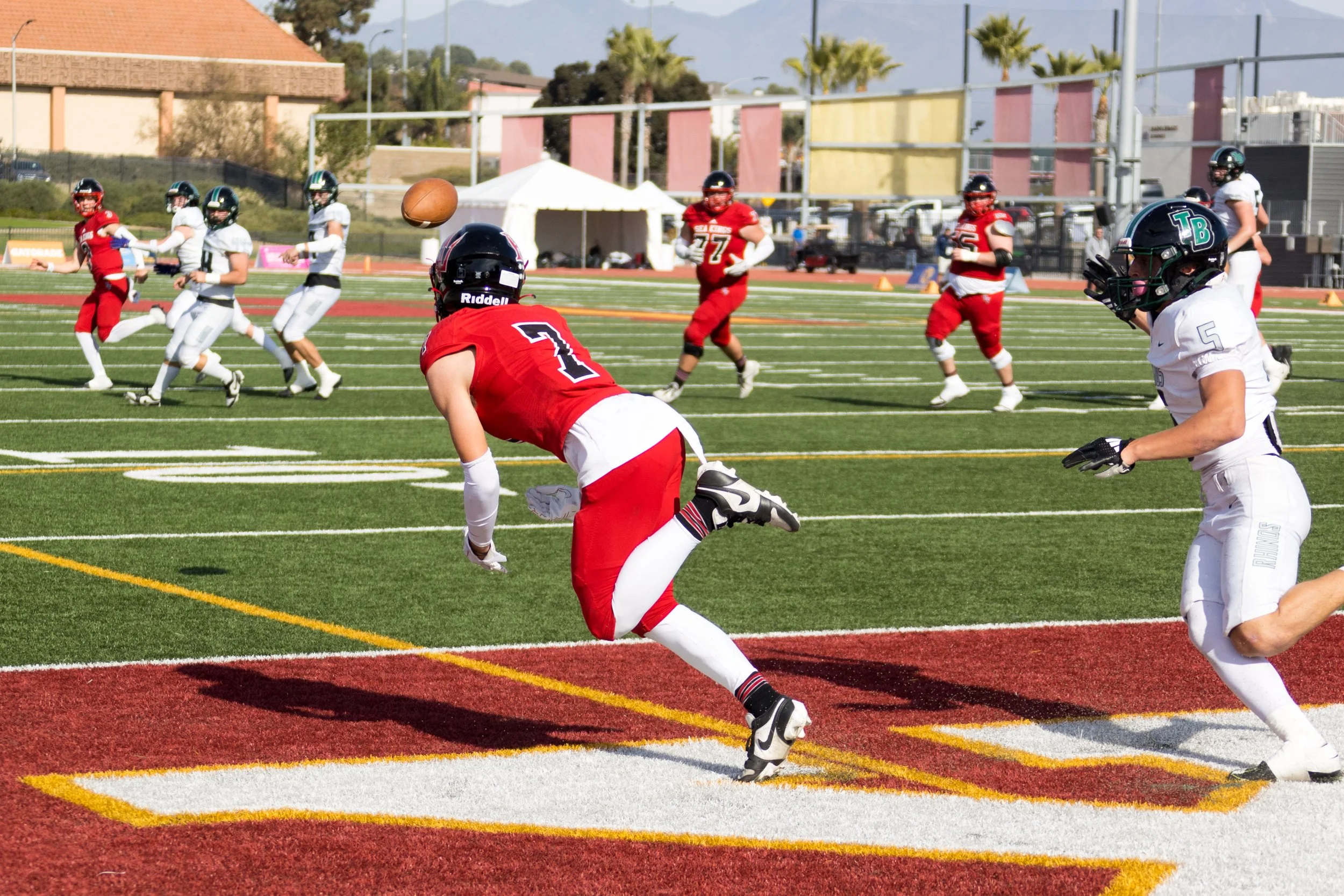 The State final, played at Saddleback College, capped off a 7-game winning streak for the Sea Kings, which included two overtime games. Palos Verdes was 4-5 after Week 9 following a loss to Inglewood, but in a win-or-bust situation in the final week of the regular season, the Sea Kings were able to take down their cross-town rivals, Mira Costa, in an overtime thriller. Though the early losses hurt, the competition level and lessons learned made Palos Verdes powerful, as they won their last 3 games by a score of 16 or more.