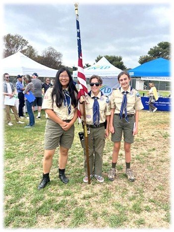 Members of Troop 258 Conduct Flag Ceremony Taylie Saga-Narikawa, Cora Berwanger, Ella LaFlash