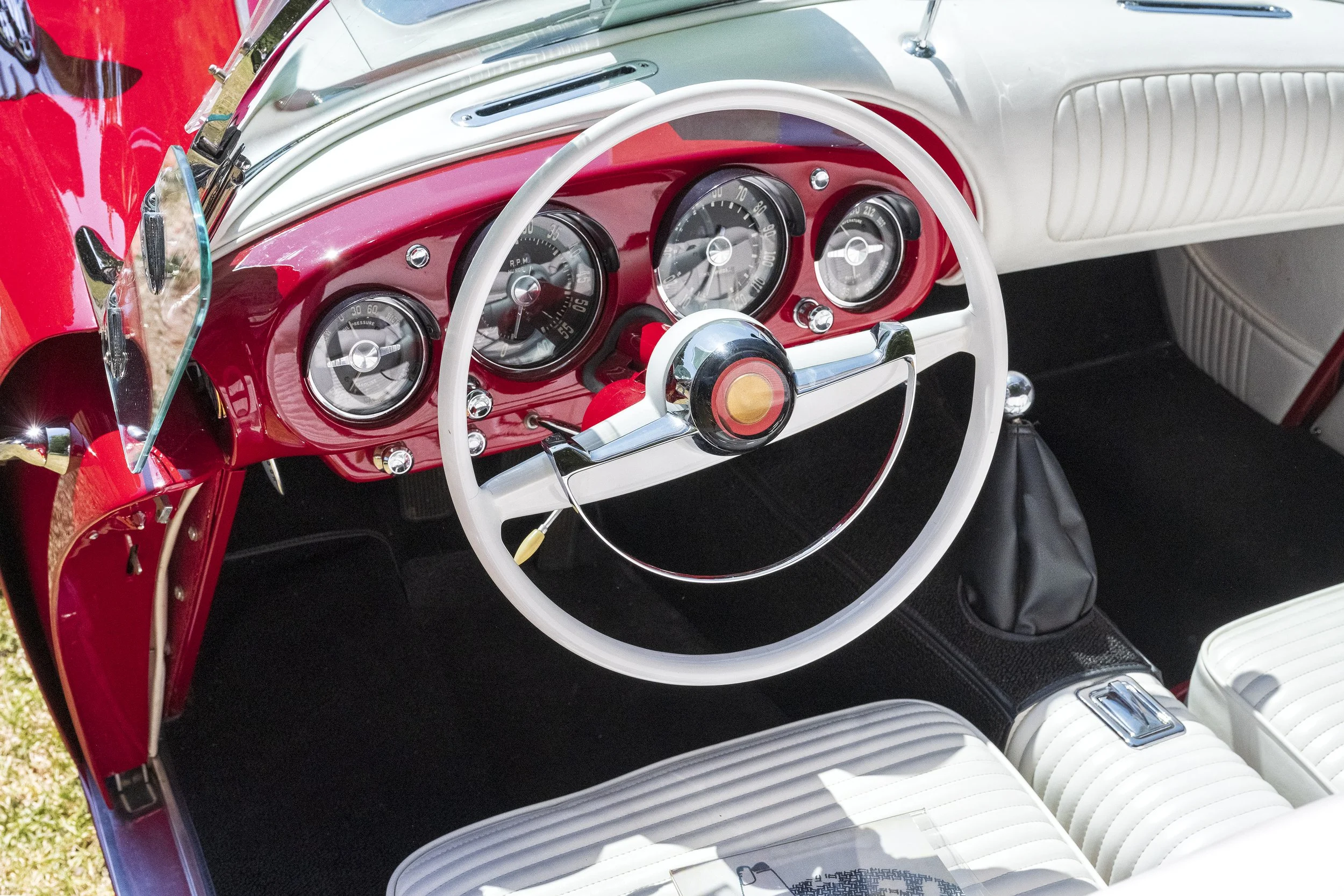 The post-World War II period also sparked desire for adventure among the motoring public. U.S. companies such as Ford and Chevrolet took note of the number European roadsters making their way into the American market. Few people are aware that Kaiser Motors, primarily known for their conservative sedan designs decided to attempt to break into the roadster market with their 1954 Kaiser Darrin 161. The roadster took its name from the company President, Henry J. Kaiser, and its designer, Howard “Dutch” Darrin.