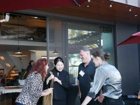 Concert host Kath Anderson, percussionist Doyeon Kim, CSULB professor, Eric Hartwell, and percussionist Peyton Esraelian sharing sweet stories